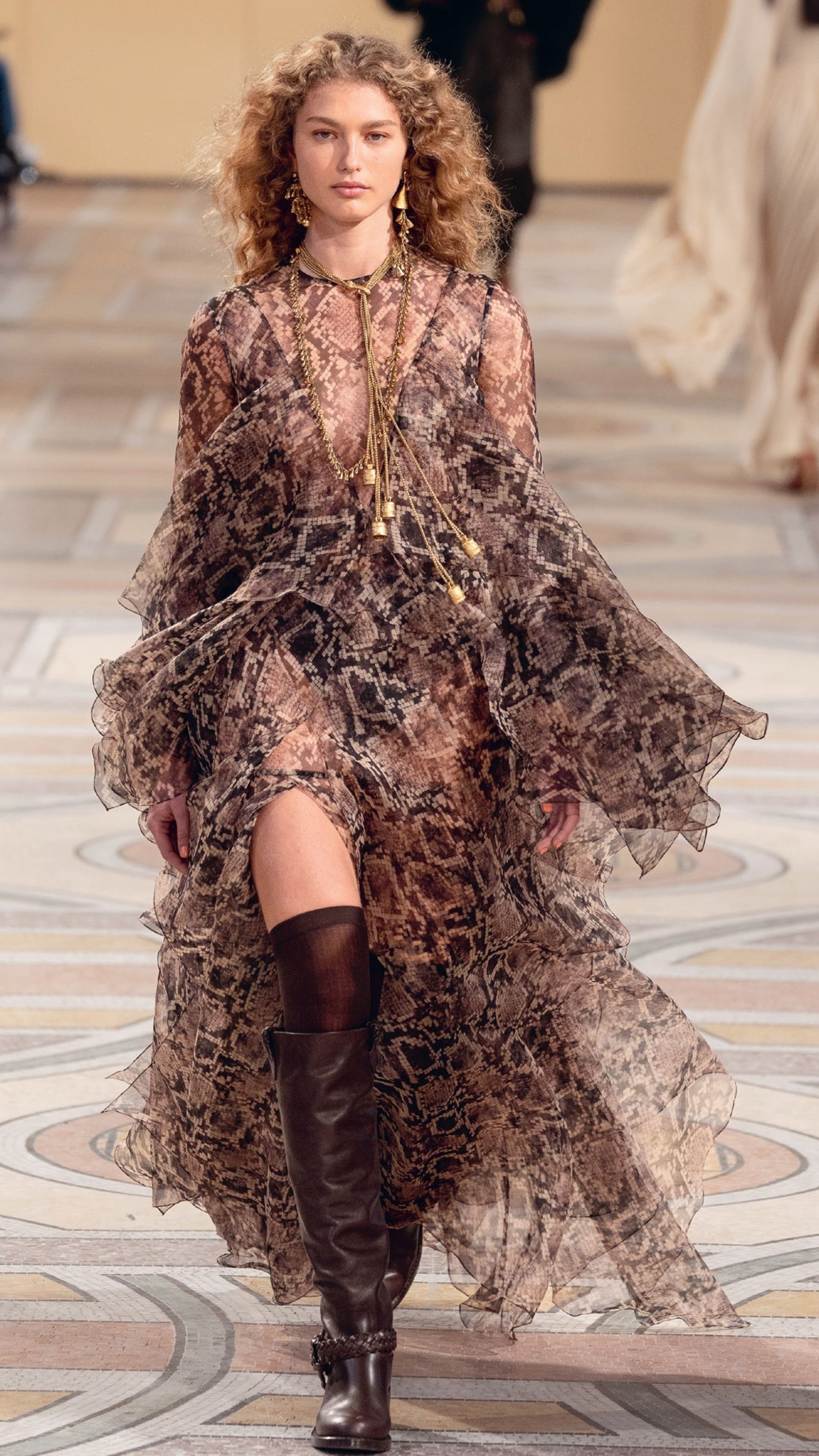 Die 70er Jahre sind zurück – aber mit Stil. Statt wildem Hippie-Look dominieren jetzt klare Schnitte und edles Tailoring. Samtstoffe in tiefen Farben ersetzen Patchwork und Fransen. Schlaghosen feiern ihr Comeback, aber kombiniert mit modernen Silhouetten. Retro trifft Eleganz – ein Jahrzehnt neu interpretiert.