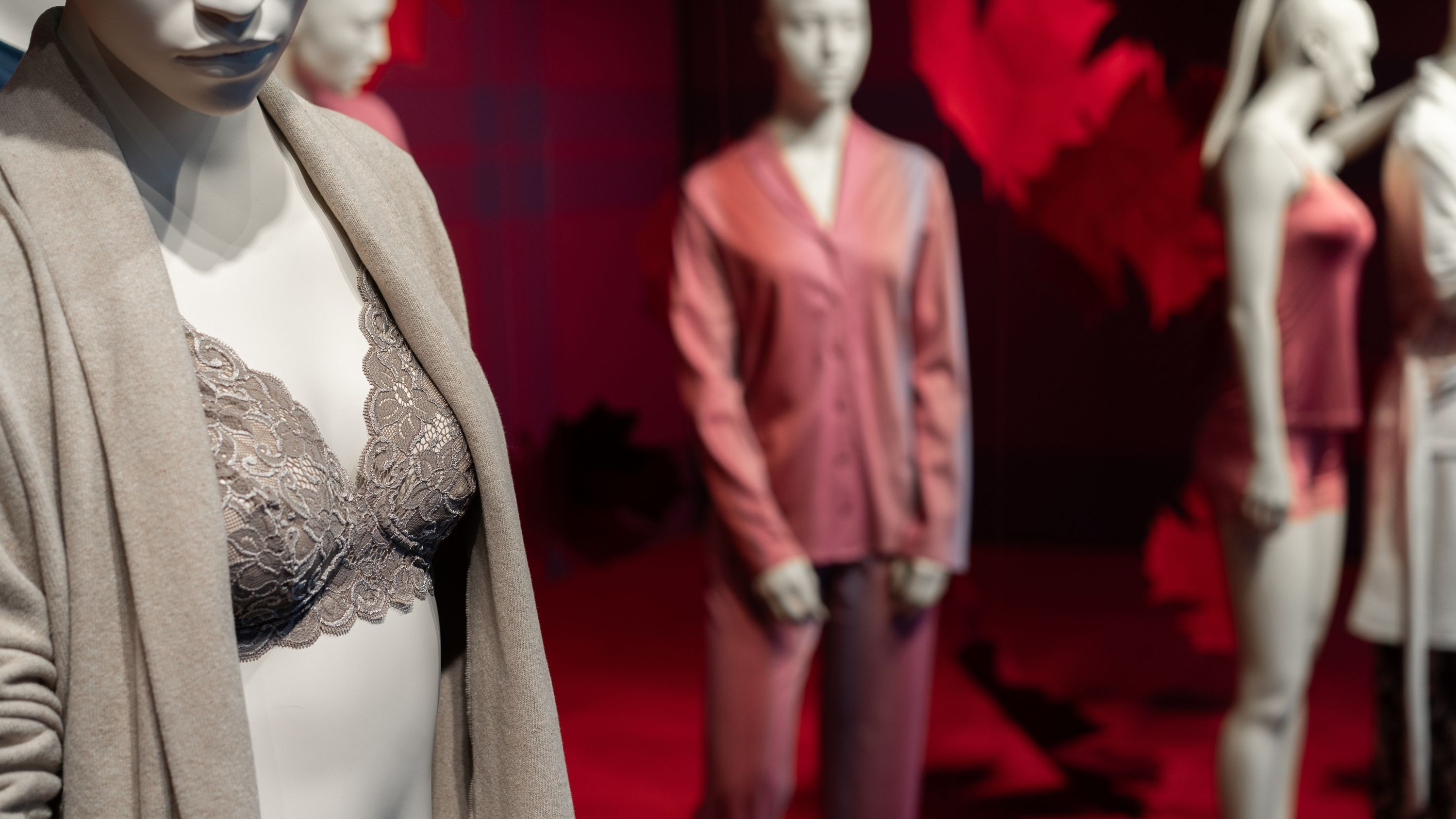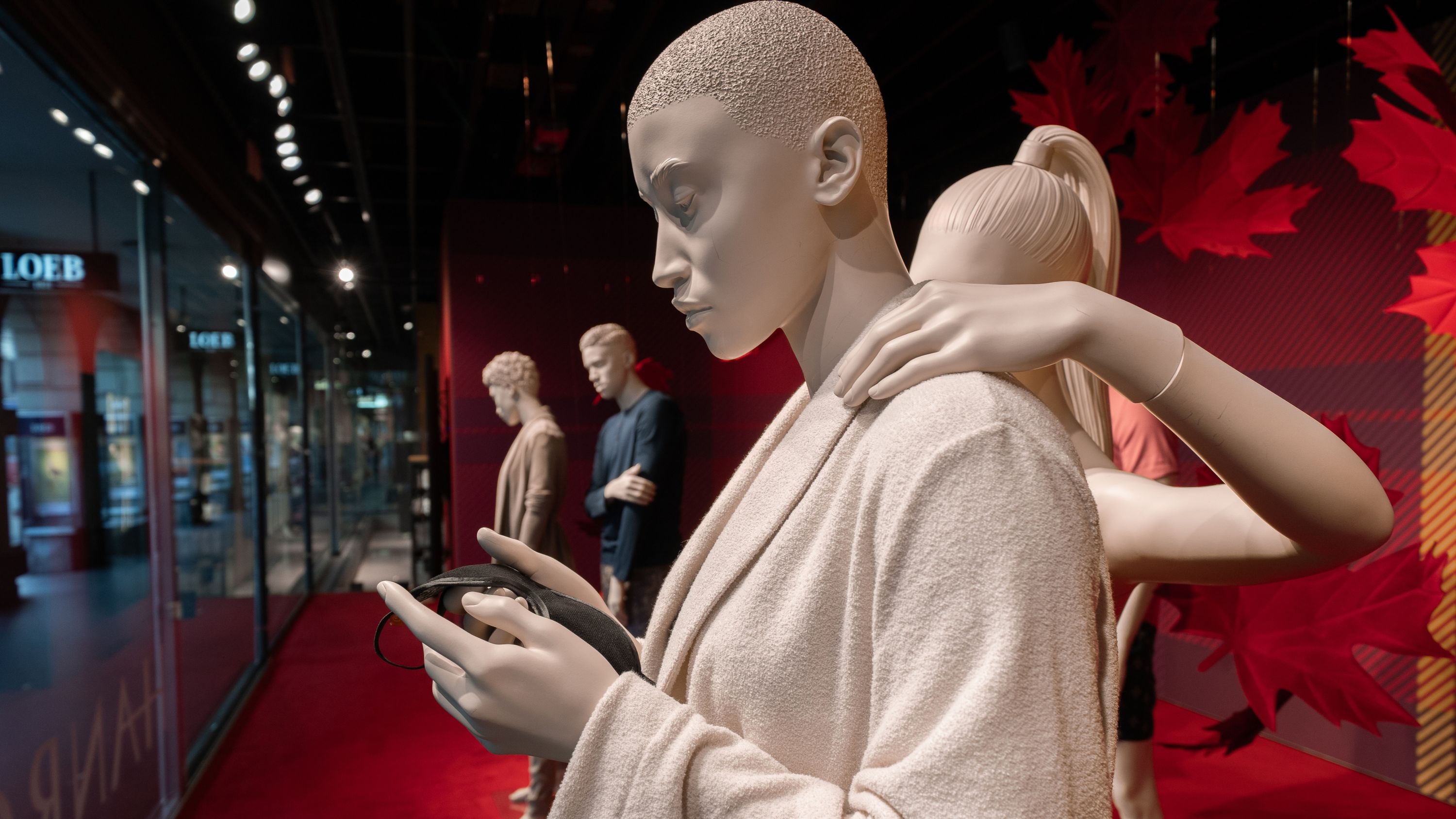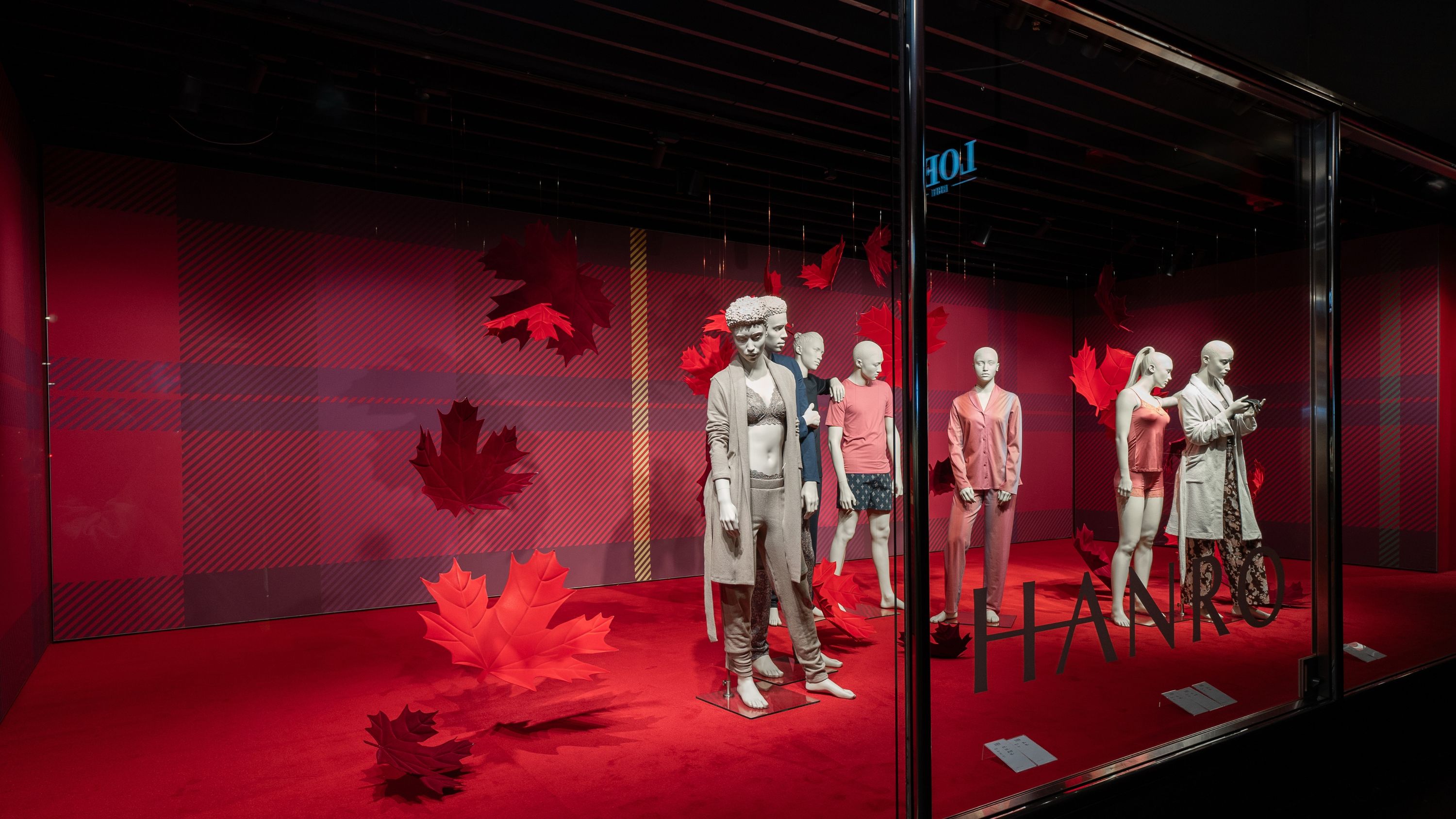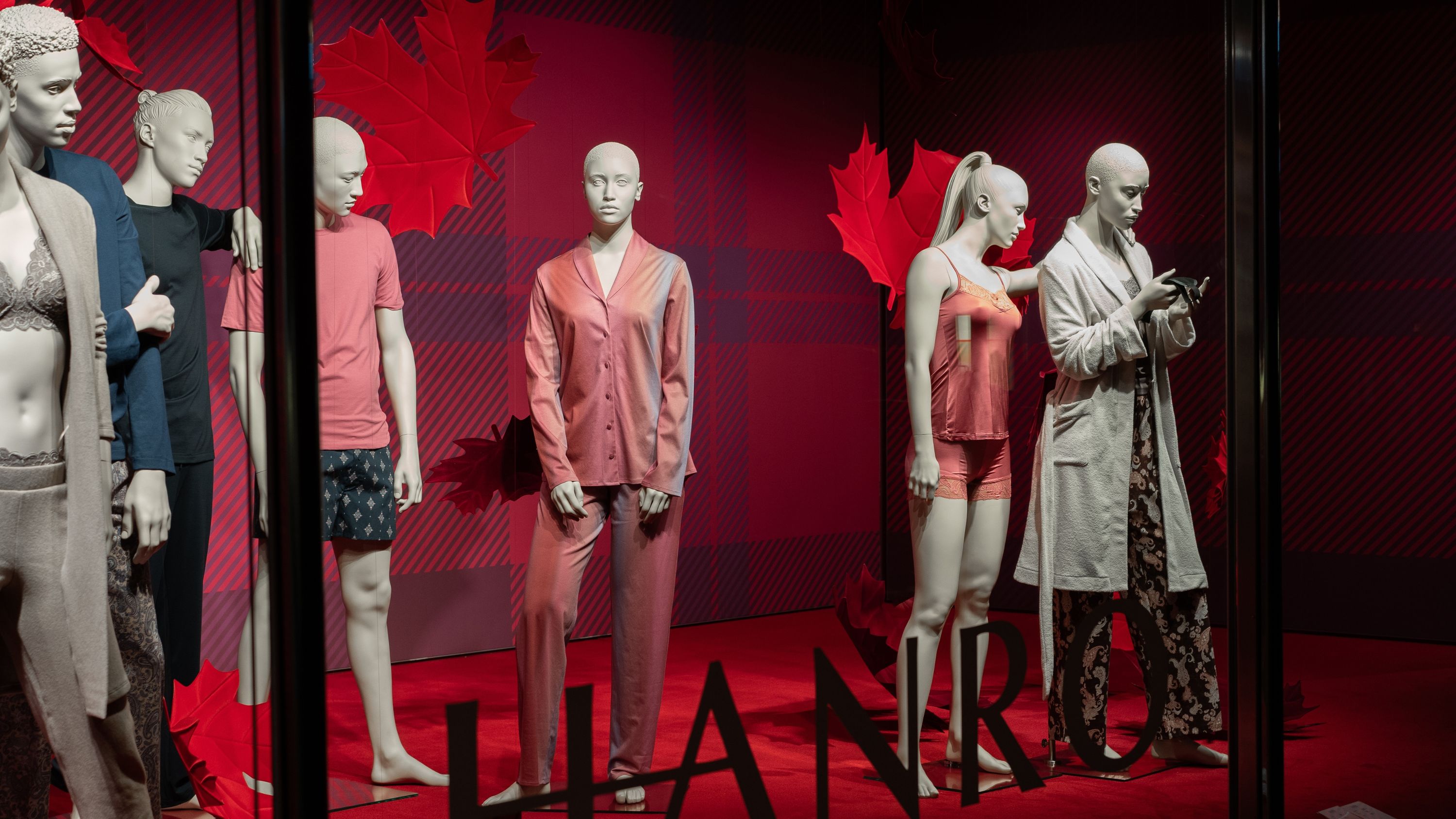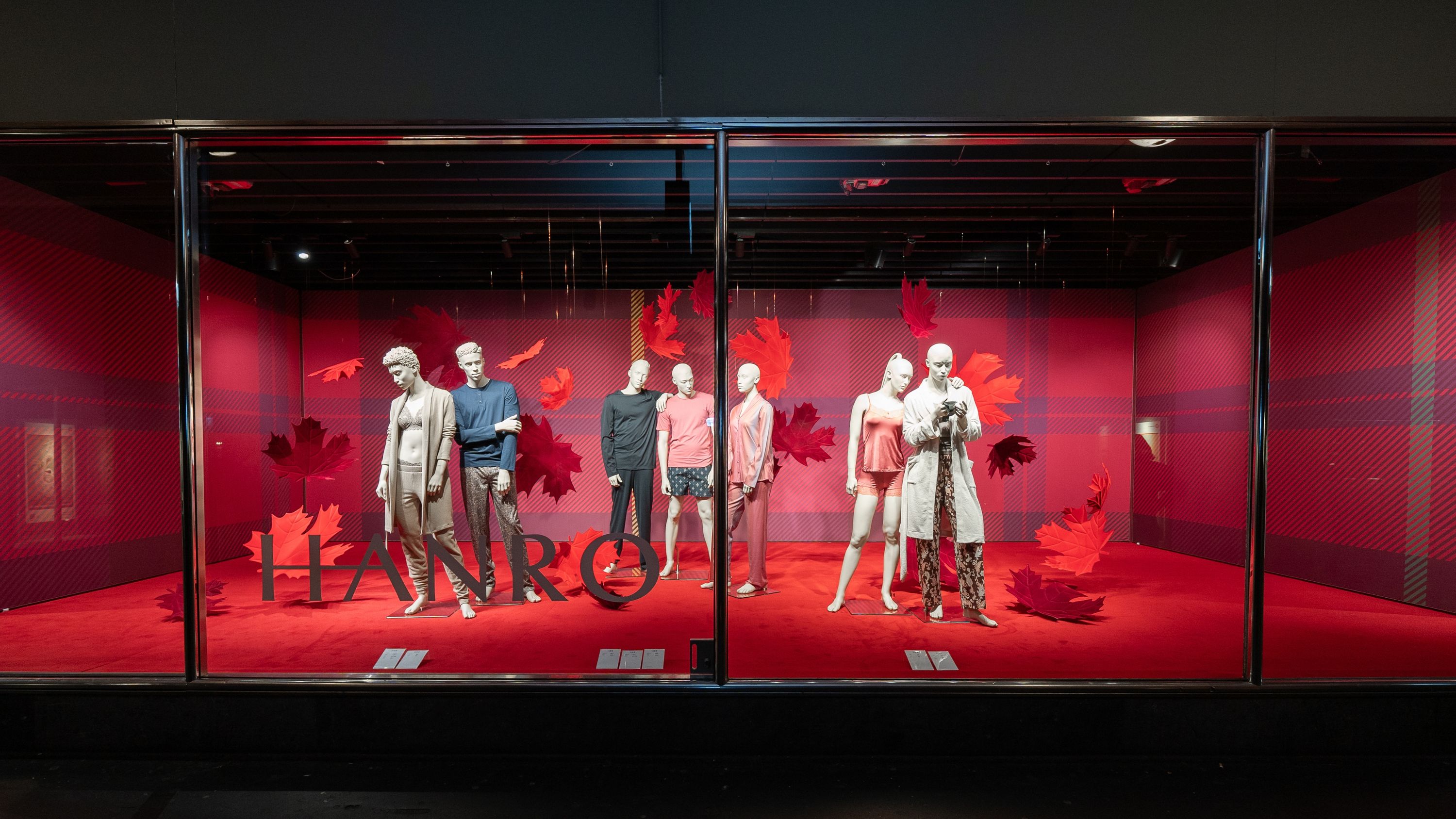 Unsere Schaufensterbox erstrahlt in zeitloser Eleganz: HANRO präsentiert seine aktuelle Kollektion in einem stilvollen Setting, das die edlen Stoffe und puristischen Designs der Marke hervorhebt. Umgeben von kräftigen, roten Blättern und dem LOEB-eigenen «Check»-Muster aus der Herbstkampagne «Harvest Glam», entfaltet die hochwertige Ware ihre volle Wirkung und lädt dazu ein, die schlichte Raffinesse von HANRO zu entdecken.