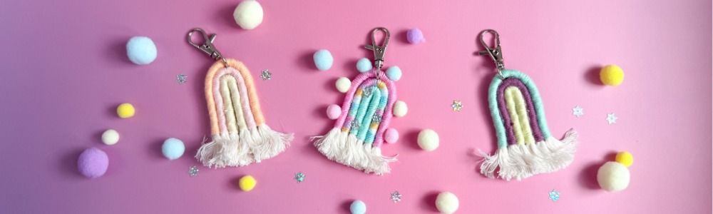 Gemeinsam mit Gabriela Scheidegger von BellArt Gabriela aus Bern, gestalten wir bunte Makramee-Regenbogen-Anhänger. Dabei werden farbige Garne um Kordeln gewickelt – und wer mag, verziert sein kleines Kunstwerk zusätzlich mit Pompons und Glitzersternen. Jeder Regenbogen wird ein fröhliches Unikat! Er ist dann ein idealer Begleiter an einem Schulrucksack oder Schlüsselbund.